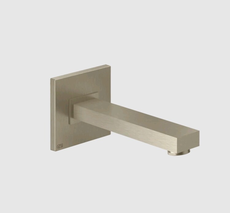 Излив, Gessi, Rettangolo, для ванны, тип установки-настенный, вынос излива, мм-300, стандарт подводки-1/2", цвет-Finox Излив, Gessi, Rettangolo, для ванны, цвет-Finox