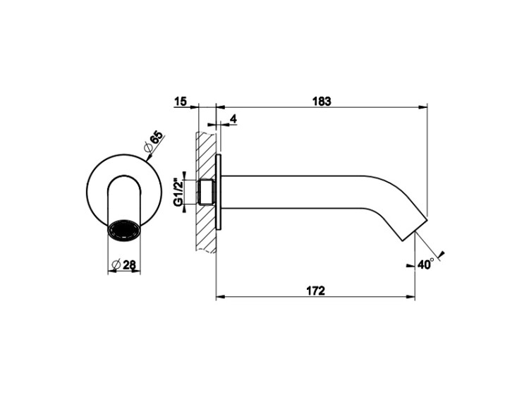 Излив, Gessi, Shower316, для ванны, тип установки-встраиваемый в стену, вынос излива, мм-183, стандарт подводки-1/2", цвет-Copper Brushed PVD Излив, Gessi, Shower316, цвет-Copper Brushed PVD