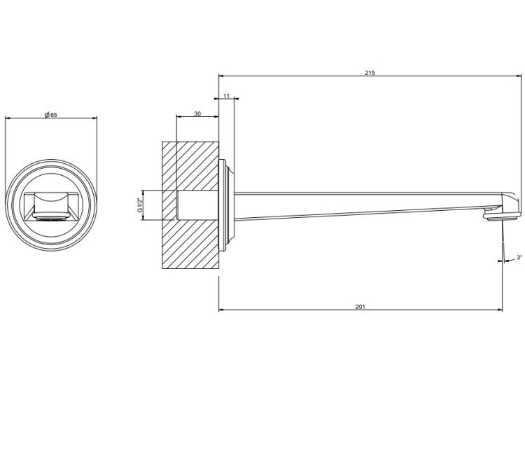 Излив, Gessi, VENTI20, настенный, вынос излива, мм-201, стандарт подводки-1/2", цвет-Finox Brushed Nickel Излив, Gessi, VENTI20, цвет-Finox Brushed Nickel