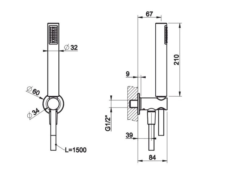 Душевой набор, Gessi, Inciso, диаметр лейки, мм-32, форма лейки-цилиндрическая, держатель для душа-есть, шланг-есть, длина шланга, мм-1500, шланговое подключение-есть, цвет-Finox Душевой набор, Gessi, Inciso, цвет -Finox