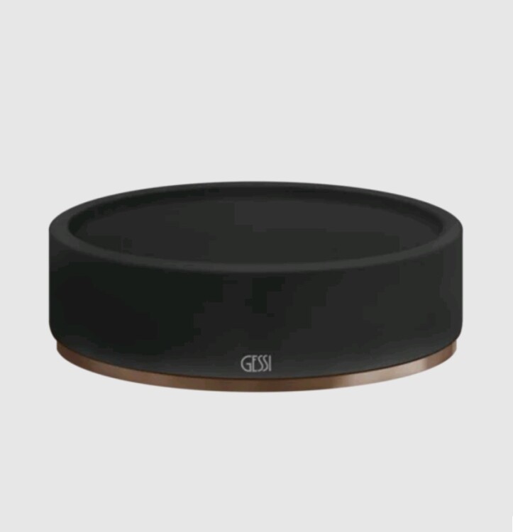 Мыльница, Gessi, 316, ширина, мм-115, глубина, мм-115, высота, мм-34, тип установки-настольный (свободностоящий), материал мыльницы-керамика черная (Neolite), держатель-в комплекте, материал держателя-металл, без креплений, цвет-Copper Brushed PVD Мыльница, Gessi, 316, шгв 115*115*34, цвет-чёрный/Copper Brushed PVD