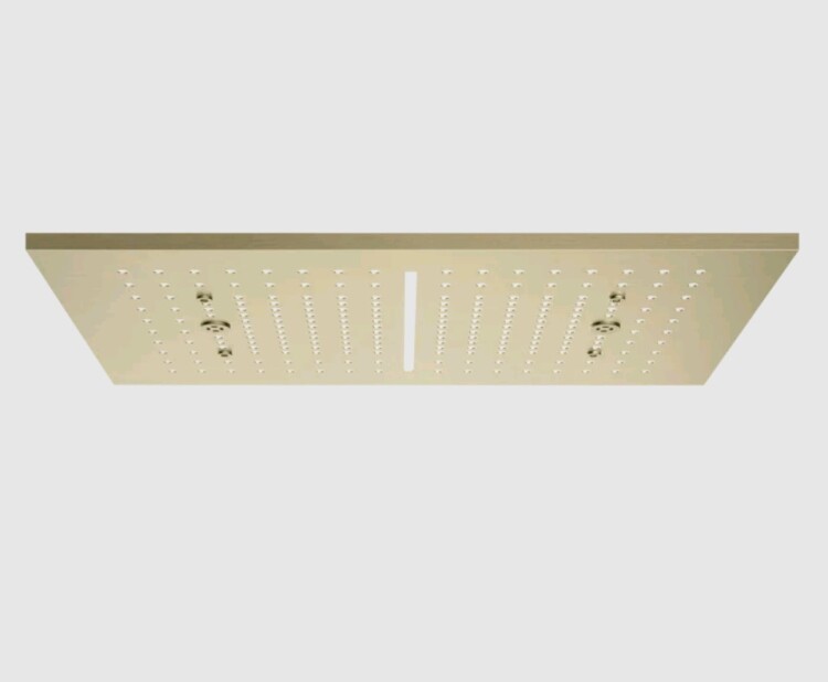 Накладная панель, Gessi, Afilo, для многофункциональной системы, многоструйная, тип установки-потолочный встраиваемый, размер душевого диска, мм-300*500, форма-прямоугольная, внутренняя часть-необходимо заказать, цвет-Brushed Brass PVD Накладная панель, Gessi, Afilo, 300*500, для многофункциональной системы, цвет-Brushed Brass PVD