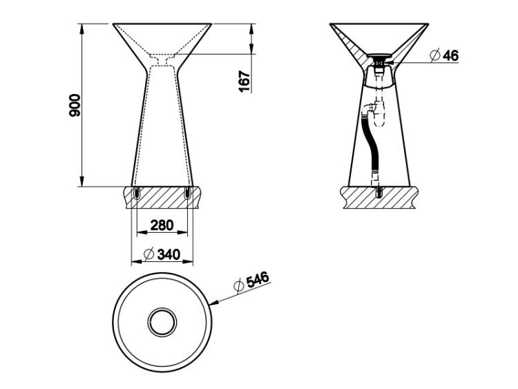 Раковина, Gessi, Cono, ширина, мм-546, глубина, мм-546, высота, мм-900, тип установки-напольный, отверстия для смесителя-отсутствуют, материал-Cristalplant, цвет-матовый белый, слив в пол, в комплект входит сифон и донный клапан решетчатый Раковина, Gessi, Cono, шгв 546*546*900, отверстия для смесителя-отсутствуют, цвет -матовый белый