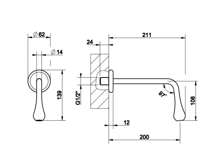 Излив, Gessi, Goссia, тип установки-настенный, вынос излива, мм-200, стандарт подводки-1/2", цвет-черный XL Излив, Gessi, Goссia, цвет-черный XL