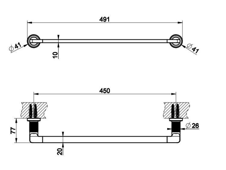 Полотенцедержатель, Gessi, Inciso, одинарный, ширина, мм-450, глубина, мм-77, высота, мм-41, тип установки-настенный, цвет-Black XL Полотенцедержатель, Gessi, Inciso, шг 450*77*41, цвет-Black XL