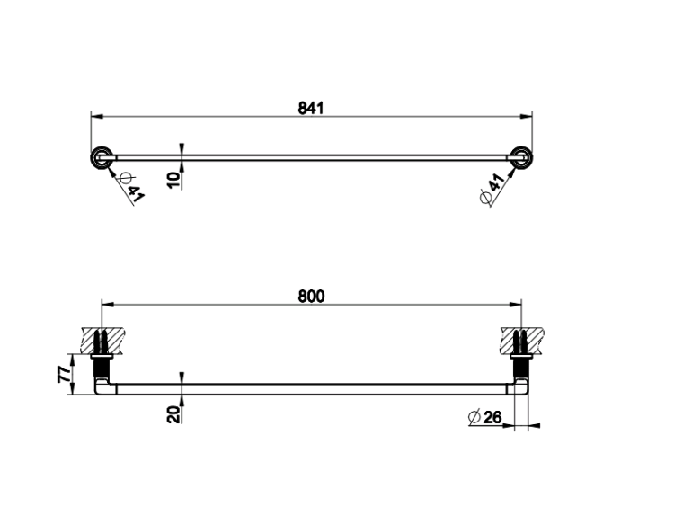 Полотенцедержатель, Gessi, Inciso, одинарный, ширина, мм-800, глубина, мм-77, высота, мм-41, цвет- Finox Brushed Nickel Полотенцедержатель, Gessi, Inciso, шгв 800*77*41, цвет- Finox Brushed Nickel