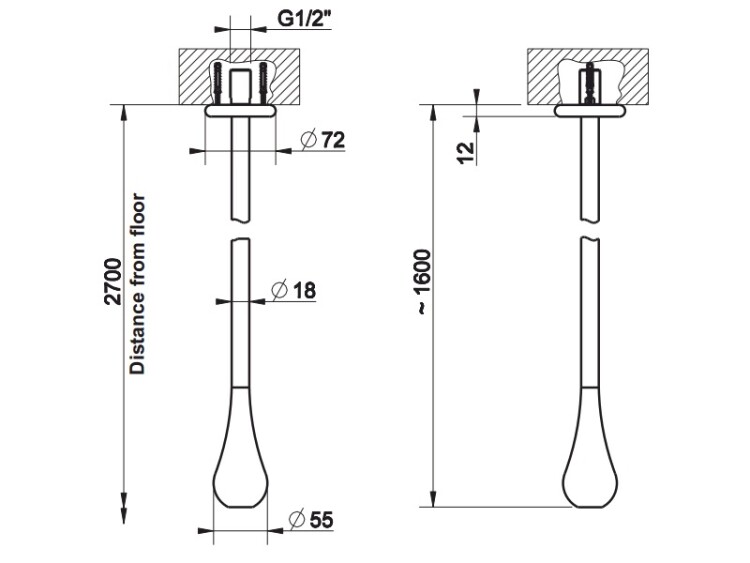 Излив, Gessi, Goссia, тип установки-потолочный, вынос излива, мм-1600, стандарт подводки-1/2", цвет-хром Излив, Gessi, Goссia, цвет-хром