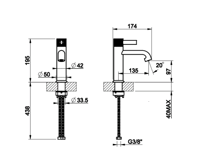 Смеситель для раковины, Gessi, Inciso, тип открывания воды-однорычажный, отверстия для монтажа-1, высота, мм-195, вынос излива, мм-135, тип подводки-гибкая, стандарт подвода воды-3/8", цвет-Black XL Смеситель для раковины, Gessi, Inciso, цвет-Black XL