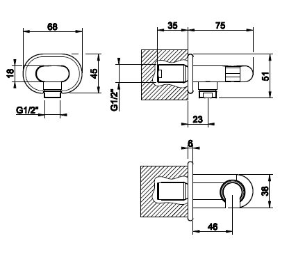 Шланговое подсоединение, Gessi, GOCCIA, держатель-в комплекте, стандарт подвода воды-1/2", цвет-Brushed Chrome Шланговое подсоединение, Gessi, GOCCIA, цвет-Brushed Chrome