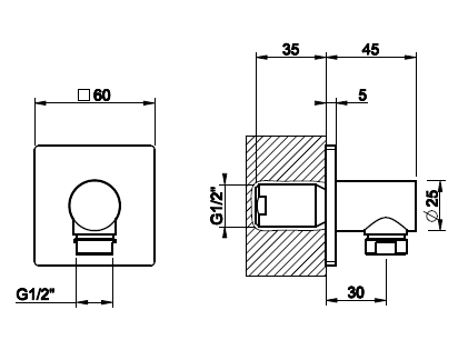 Шланговое подсоединение, Gessi, Inverso Bath&Shower, стандарт подвода воды-1/2", цвет-Finox Brushed Nickel Шланговое подсоединение, Gessi, Inverso Bath&Shower, цвет-Finox Brushed Nickel