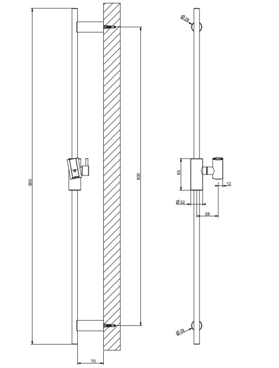 Штанга для душа, Gessi, Habito Bath-Shower, длина штанги, мм-900, держатель ручного душа-есть, цвет-Dark Bronze Штанга для душа, Gessi, Habito Bath-Shower, 900, цвет-Dark Bronze