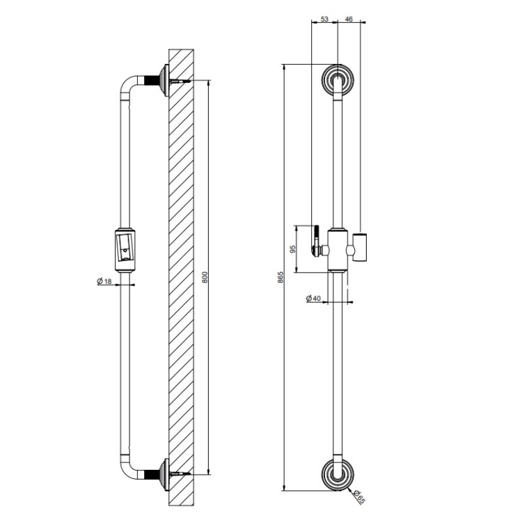 Штанга для душа, Gessi, VENTI20, длина штанги, мм-800, держатель ручного душа-есть, цвет-Brushed Brass PVD Штанга для душа, Gessi, VENTI20, 800, цвет-Brushed Brass PVD