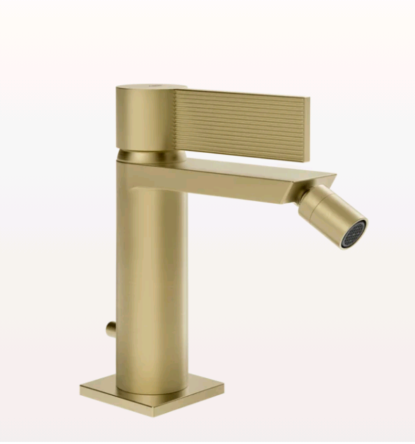 Смеситель для биде, Gessi, Inverco Rigato, тип открывания воды-однорычажный, тип регулирования воды-керамический картридж, отверстия для монтажа-1, высота, мм-156, вынос излива, мм-118, материал ручки-металл, цвет ручки-в цвет смесителя, донный клапан-есть, тип подводки-гибкая, стандарт подвода воды-3/8", цвет-Brushed Brass PVD Смеситель для биде, Gessi, Inverco Rigato, цвет-Brushed Brass PVD