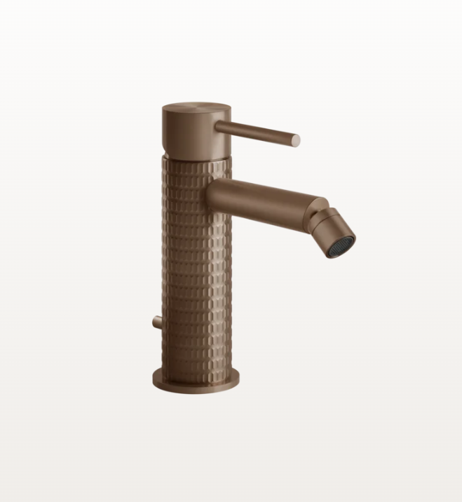 Смеситель для биде, Gessi, Meccanica, тип открывания воды-однорычажный, отверстия для монтажа-1, высота, мм-159, вынос излива, мм-118, донный клапан-есть, цвет-Brushed Copper PVD Смеситель для биде, Gessi, Meccanica, цвет-Brushed Copper PVD