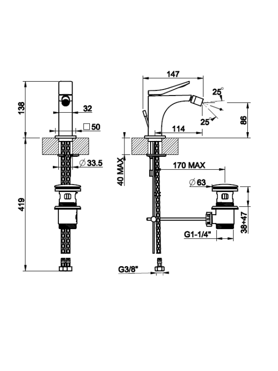 Смеситель для биде, Gessi, Rilievo, тип открывания воды-однорычажный, отверстия для монтажа-1, высота, мм-138, вынос излива, мм-114, тип подводки-гибкая, стандарт подвода воды-3/8", цвет-хром Смеситель для биде, Gessi, Rilievo, цвет-хром