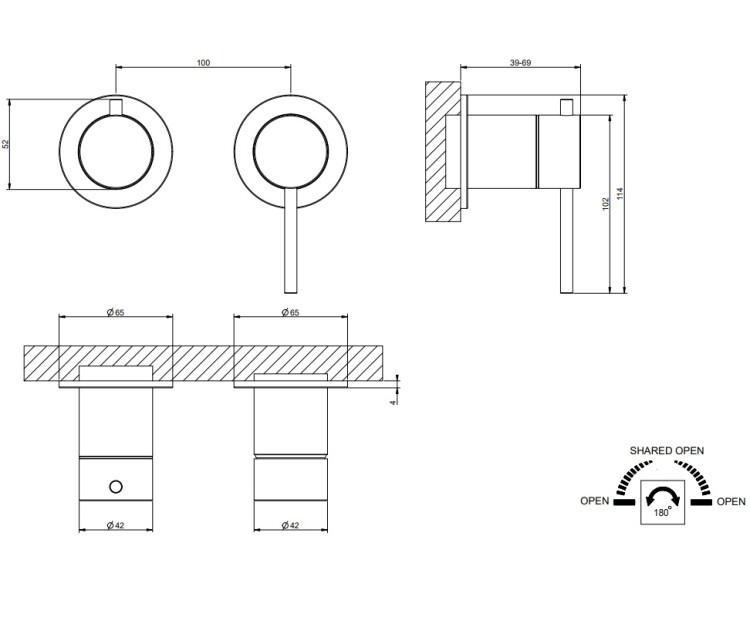 Смеситель для душа, Gessi, 316 Bath-Shower, на 2 потребителя, тип открывания воды-однорычажный, тип регулирования воды-керамический картридж, монтаж-настенный встраиваемый, отверстия для монтажа-2, внутренняя часть-необходимо заказать, цвет-Black Metal Brushed PVD Смеситель для душа, Gessi, 316 Bath-Shower, на 2 потребителя, цвет-Black Metal Brushed PVD