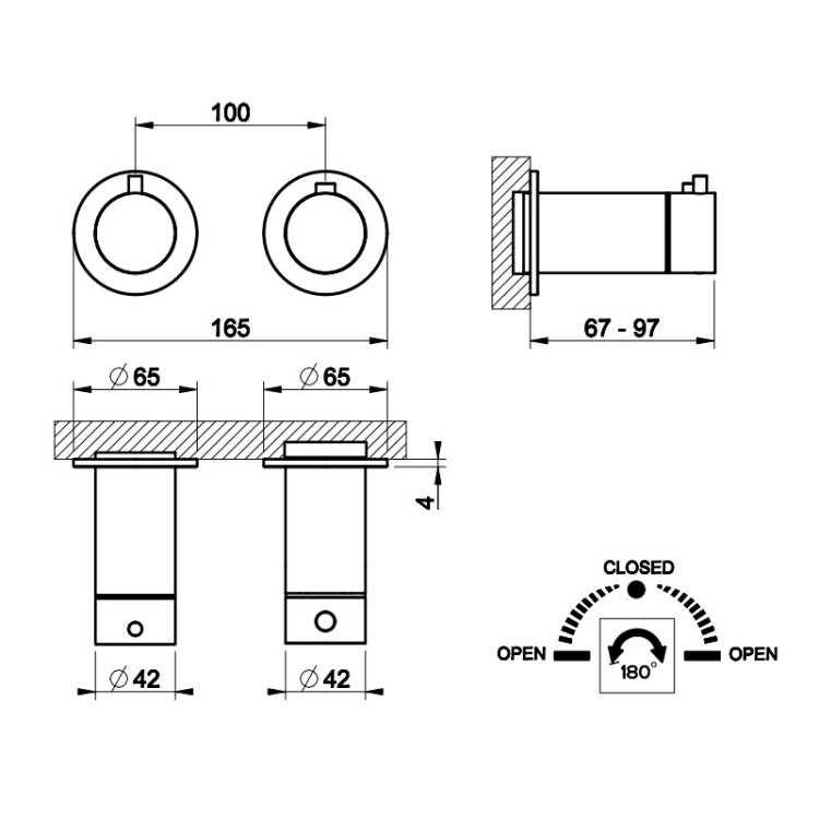 Смеситель для душа, Gessi, 316 Bath-Shower, на 2 потребителя, тип открывания воды-однорычажный, тип регулирования воды-термостатический картридж, монтаж-настенный встраиваемый, отверстия для монтажа-2, внутренняя часть-необходимо заказать, цвет-Black Metal Brushed PVD Смеситель для душа, Gessi, 316 Bath-Shower, на 2 потребителя, цвет-Black Metal Brushed PVD