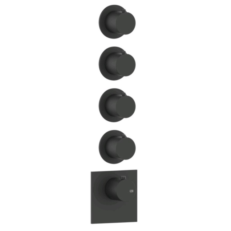 Смеситель для душа, Gessi, 316 Bath-Shower, на 4 потребителя, тип открывания воды-однорычажный, тип регулирования воды-термостатический картридж, монтаж-настенный встраиваемый, с вертикальной/горизонтальной установкой, отверстия для монтажа-5, внутренняя часть-необходимо заказать, цвет-черный матовый Смеситель для душа, Gessi, 316 Bath-Shower, на 4 потребителя, цвет-черный матовый