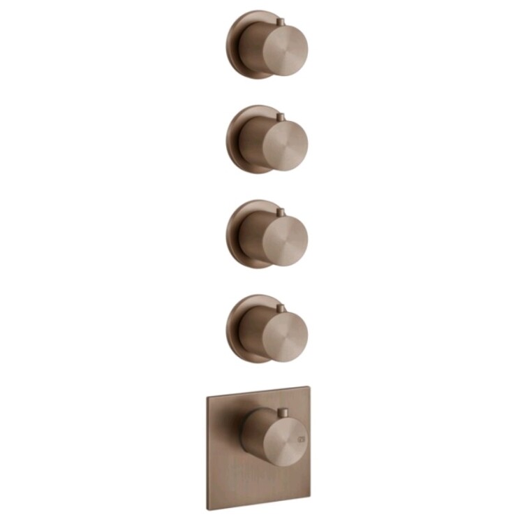 Смеситель для душа, Gessi, 316 Bath-Shower, на 4 потребителя, тип открывания воды-однорычажный, тип регулирования воды-термостатический картридж, монтаж-настенный встраиваемый, с вертикальной/горизонтальной установкой, отверстия для монтажа-5, внутренняя часть-необходимо заказать, цвет-Copper Brushed PVD Смеситель для душа, Gessi, 316 Bath-Shower, на 4 потребителя, цвет-Copper Brushed PVD