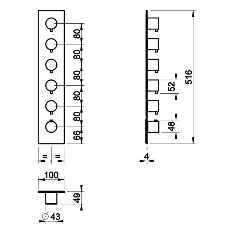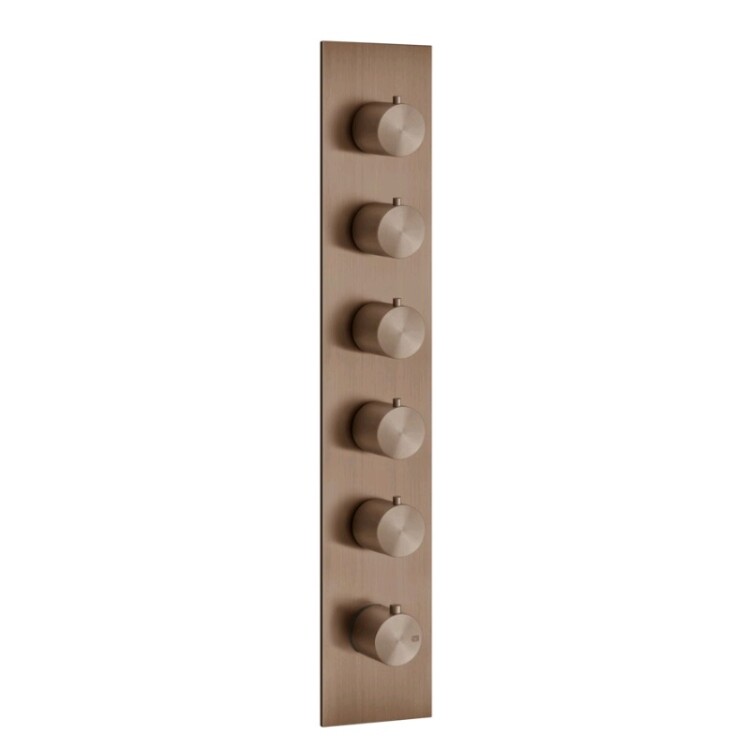 Смеситель для душа, Gessi, 316 Bath-Shower, на панели, на 5 потребителей, тип открывания воды-однорычажный, тип регулирования воды-термостатический картридж, монтаж-настенный встраиваемый, отверстия для монтажа-6, внутренняя часть-необходимо заказать, цвет-Copper Brushed PVD Смеситель для душа, Gessi, 316 Bath-Shower, на 5 потребителей, цвет-Copper Brushed PVD