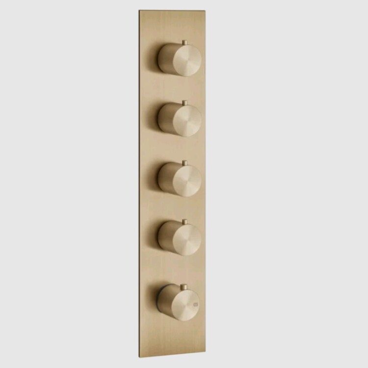 Смеситель для душа, Gessi, 316, на 4 потребителя, на панели, тип открывания воды-однорычажный, тип регулирования воды-термостатический картридж, монтаж-настенный встраиваемый, с вертикальной/горизонтальной установкой, отверстия для монтажа-5, внутренняя часть-необходимо заказать, цвет-Warm Bronze Brushed PVD Смеситель для душа, Gessi, 316, на 4 потребителя, цвет-Warm Bronze Brushed PVD