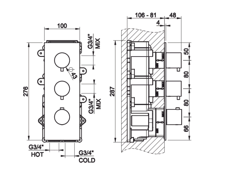 Смеситель для душа, Gessi, 316 WELLNESS, тип регулирования воды-термостатический картридж, тип установки-встраиваемый, внутренняя часть-необходимо заказать, цвет-Copper Brushed PVD, подключение на 3/4", с вертикальной/горизонтальной установкой, 2 независимых выхода Смеситель для душа, Gessi, 316 WELLNESS, цвет-Copper Brushed PVD