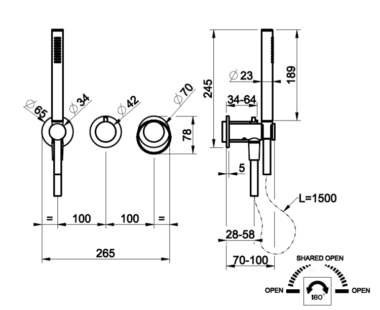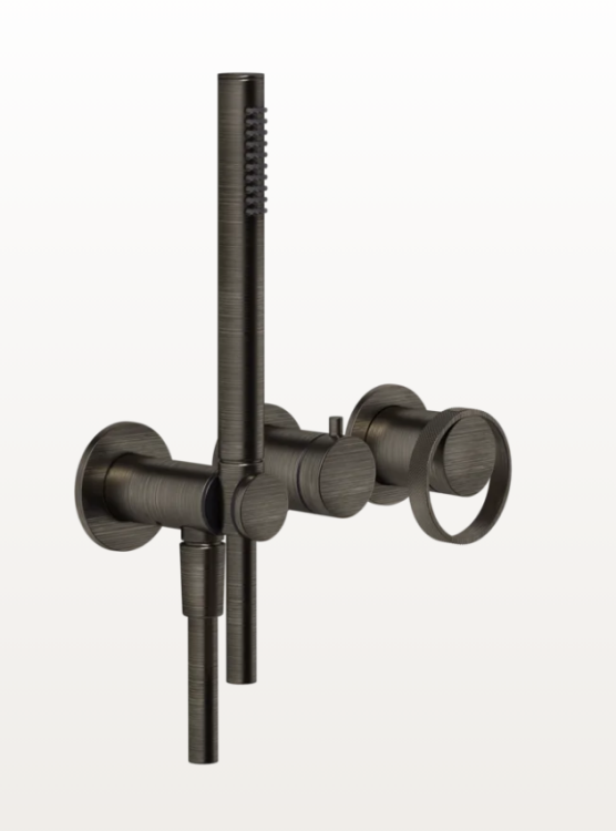 Смеситель для душа, Gessi, Anello, на 2 потребителя, тип открывания воды-однорычажный, тип регулирования воды-керамический картридж, монтаж-настенный встраиваемый, отверстия для монтажа-3, внутренняя часть-необходимо заказать, цвет-Aged Bronze Смеситель для душа, Gessi, Anello, на 2 потребителя, цвет-Aged Bronze