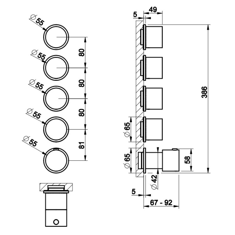 Смеситель для душа, Gessi, Anello, на 4 потребителя, тип открывания воды-вентильный, тип регулирования воды-термостатический картридж, монтаж-настенный встраиваемый, отверстия для монтажа-5, установка-вертикальная/горизонтальная, внутренняя часть-необходимо заказать, цвет-Warm Bronze Brushed PVD Смеситель для душа, Gessi, Anello, на 4 потребителя, цвет-Warm Bronze Brushed PVD