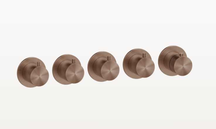 Смеситель для душа, Gessi, BATH-SHOWER 316, на 4 потребителя, тип открывания воды-вентильный, тип регулирования воды-термостатический картридж, монтаж-настенный встраиваемый, вертикальная/горизонтальная установка, отверстия для монтажа-5, внутренняя часть-необходимо заказать, цвет-Copper Brushed PVD Смеситель для душа, Gessi, BATH-SHOWER 316, на 4 потребителя, цвет-Copper Brushed PVD