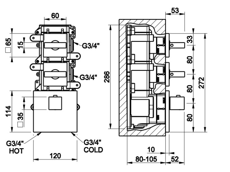 Тип регулирования воды | термостатический картридж |