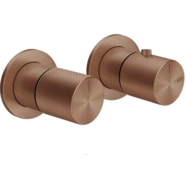 Смеситель для душа, Gessi, Habito Diamantato, на 2 потребителя, тип открывания воды-однорычажный, тип регулирования воды-термостатический картридж, монтаж-настенный встраиваемый, отверстия для монтажа-2, внутренняя часть-необходимо заказать, цвет-Copper Brushed PVD Смеситель для душа, Gessi, Habito Diamantato, на 2 потребителя, цвет-Copper Brushed PVD