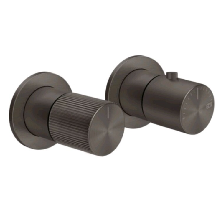Смеситель для душа, Gessi, Habito Rigato, на 1 потребитель, тип открывания воды-однорычажный, тип регулирования воды-термостатический картридж, монтаж-настенный встраиваемый, отверстия для монтажа-2, внутренняя часть-необходимо заказать, цвет-Black Metal Brushed PVD Смеситель для душа, Gessi, Habito Rigato, на 1 потребитель, цвет-Black Metal Brushed PVD
