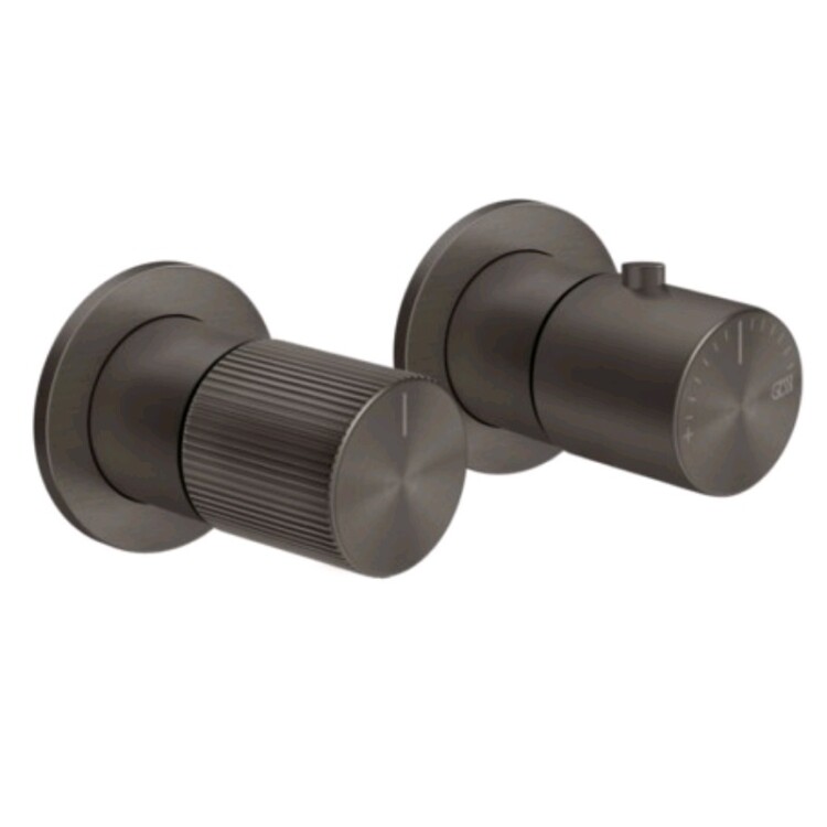 Смеситель для душа, Gessi, Habito Rigato, на 2 потребителя, тип открывания воды-однорычажный, тип регулирования воды-термостатический картридж, монтаж-настенный встраиваемый, отверстия для монтажа-2, внутренняя часть-необходимо заказать, цвет-Black Metal Brushed PVD Смеситель для душа, Gessi, Habito Rigato, на 2 потребителя, цвет-Black Metal Brushed PVD