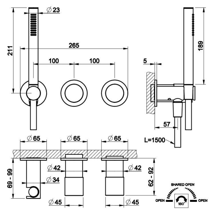 Смеситель для душа, Gessi, Habito Rigato, на 2 потребителя, тип открывания воды-однорычажный, тип регулирования воды-керамический картридж, монтаж-настенный встраиваемый, отверстия для монтажа-3, с перекключателем, ручным душем, держателем ручного душа с подводом воды, шлангом,мм-1500, внутренняя часть-необходимо заказать, цвет-Copper Brushed PVD Смеситель для душа, Gessi, Habito Rigato, на 2 потребителя, цвет-медь брашированная/шлифованная PVD