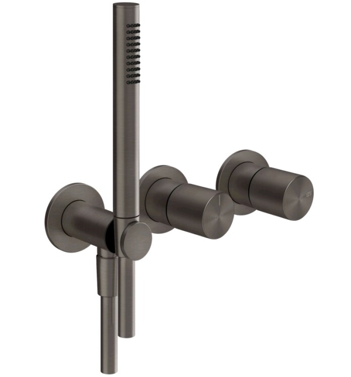 Смеситель для душа, Gessi, Habito Unito, на 2 потребителя, тип открывания воды-однорычажный, тип регулирования воды-керамический картридж, монтаж-настенный встраиваемый, отверстия для монтажа-3, с переключателем, ручным душем, держателем ручного душа с подводом воды, шлангом, мм-1500, внутренняя часть-необходимо заказать, цвет-Black Metal Brushed PVD Смеситель для душа, Gessi, Habito Unito, на 2 потребителя, цвет-Black Metal Brushed PVD
