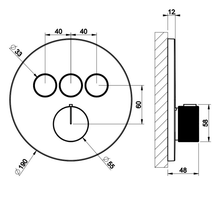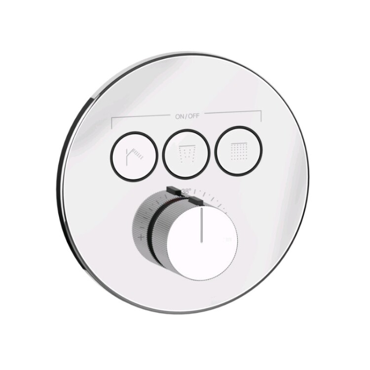Смеситель для душа, Gessi, HI-FI Comfort, на 3 потребителя, тип открывания воды-нажимной (кнопки), тип регулирования воды-термостатический картридж, монтаж-настенный встраиваемый, отверстия для монтажа-1, внутренняя часть-необходимо заказать, цвет-хром Смеситель для душа, Gessi, HI-FI Comfort, на 3 потребителя, цвет-хром