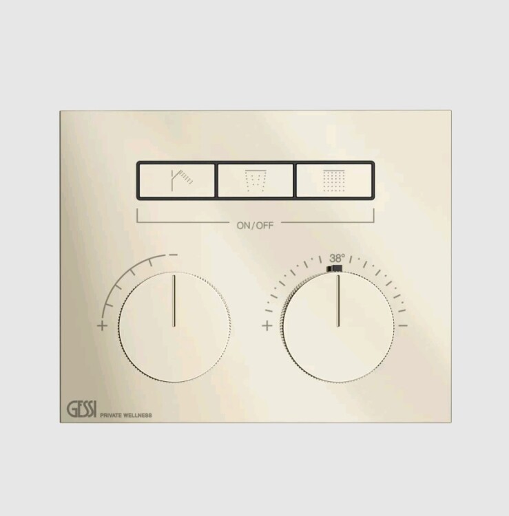 Смеситель для душа, Gessi, HI-FI Compact, на 3 потребителя, тип открывания воды-нажимной (кнопки), тип регулирования воды-термостатический картридж, монтаж-настенный встраиваемый, отверстия для монтажа-1, внутренняя часть-необходимо заказать, цвет-Nickel PVD Смеситель для душа, Gessi, HI-FI Compact, на 3 потребителя, цвет-Nickel PVD