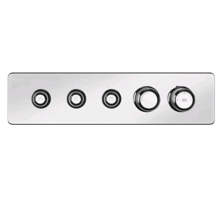 Смеситель для душа, Gessi, Hi-Fi Eclectic, на 3 потребителя, тип открывания воды-нажимной (кнопки), тип регулирования воды-термостатический картридж, монтаж-настенный встраиваемый, отверстия для монтажа-5, внутренняя часть-необходимо заказать, цвет-хром Смеситель для душа, Gessi, Hi-Fi Eclectic, на 3 потребителя, цвет-хром