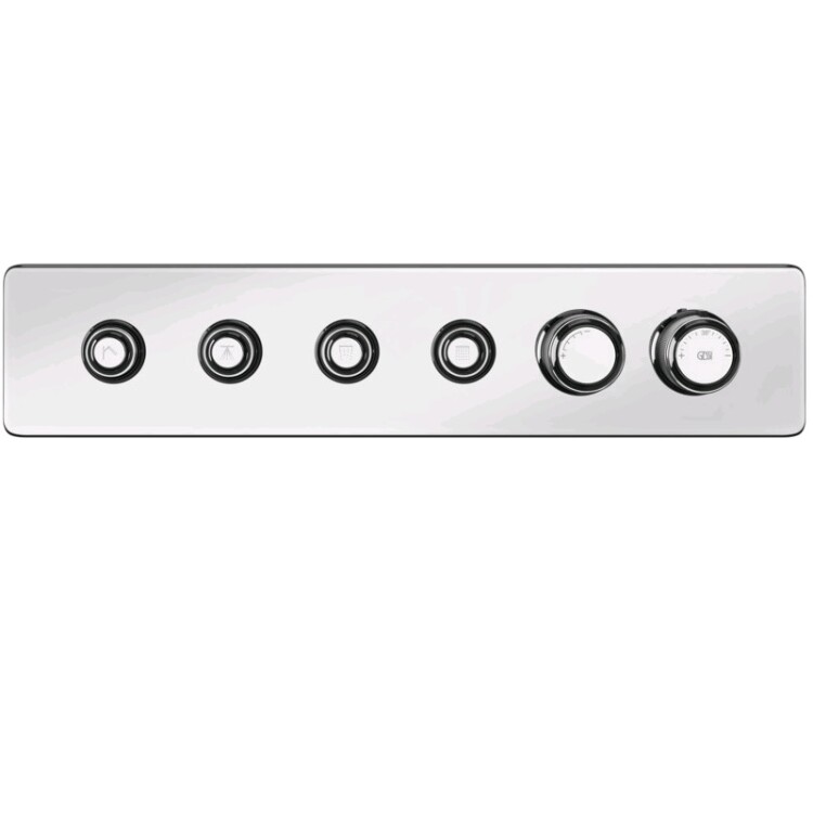 Смеситель для душа, Gessi, Hi-Fi Eclectic, на 4 потребителя, тип открывания воды-нажимной (кнопки), тип регулирования воды-термостатический картридж, монтаж-настенный встраиваемый, отверстия для монтажа-6, внутренняя часть-необходимо заказать, цвет-хром Смеситель для душа, Gessi, Hi-Fi Eclectic, на 4 потребителя, цвет-хром