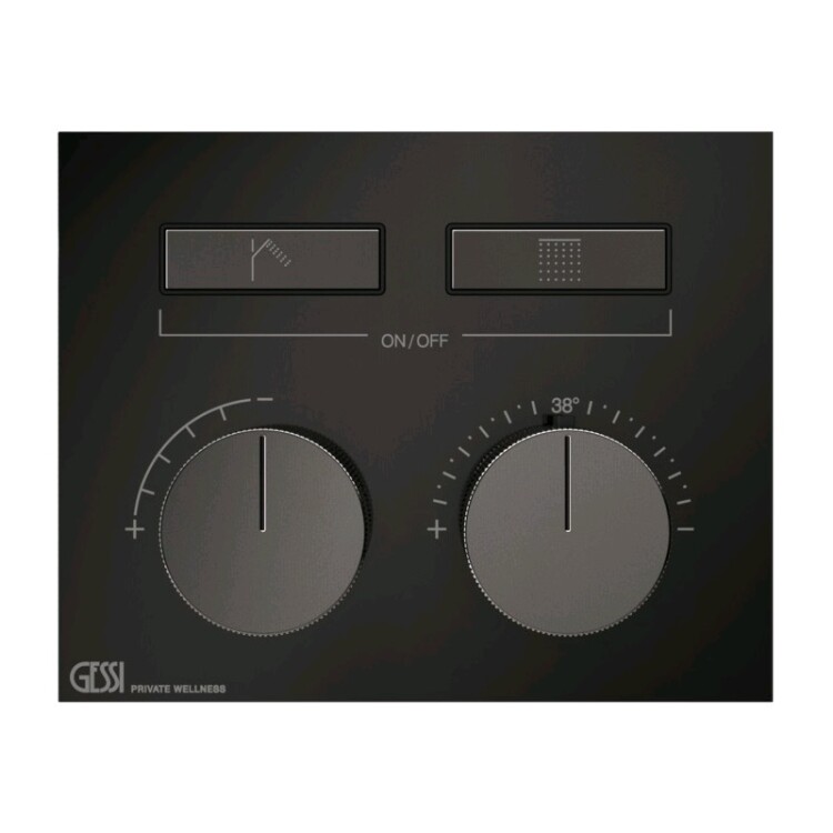 Смеситель для душа, Gessi, HI-FI, на 2 потребителя, тип открывания воды-нажимной (кнопки), тип регулирования воды-термостатический картридж, монтаж-настенный встраиваемый, отверстия для монтажа-1, внутренняя часть-необходимо заказать, цвет-Black Metal PVD Смеситель для душа, Gessi, HI-FI, на 2 потребителя, цвет-Black Metal PVD