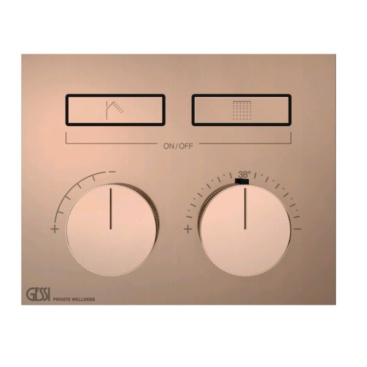 Смеситель для душа, Gessi, HI-FI, на 2 потребителя, тип открывания воды-нажимной (кнопки), тип регулирования воды-термостатический картридж, монтаж-настенный встраиваемый, отверстия для монтажа-1, внутренняя часть-необходимо заказать, цвет-Copper PVD Смеситель для душа, Gessi, HI-FI, на 2 потребителя, цвет-Copper PVD (старый арт. 63004/030)