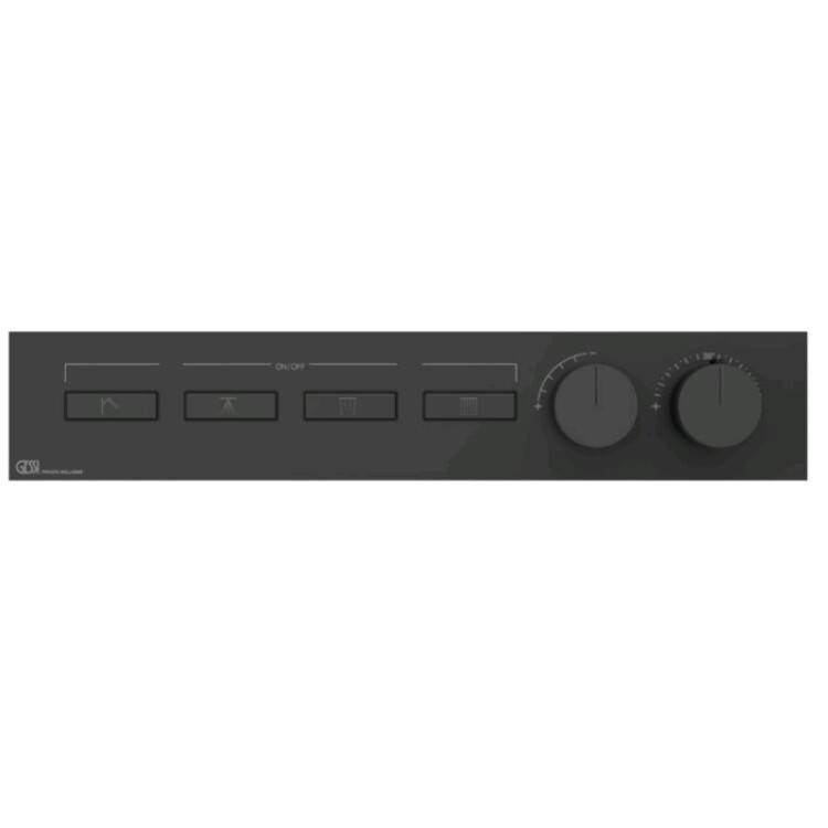 Смеситель для душа, Gessi, HI-FI, на 4 потребителя, тип открывания воды-нажимной (кнопки), тип регулирования воды-термостатический картридж, монтаж-настенный встраиваемый, отверстия для монтажа-6, внутренняя часть-необходимо заказать, цвет-черный матовый Смеситель для душа, Gessi, HI-FI, на 4 потребителя, цвет-черный матовый