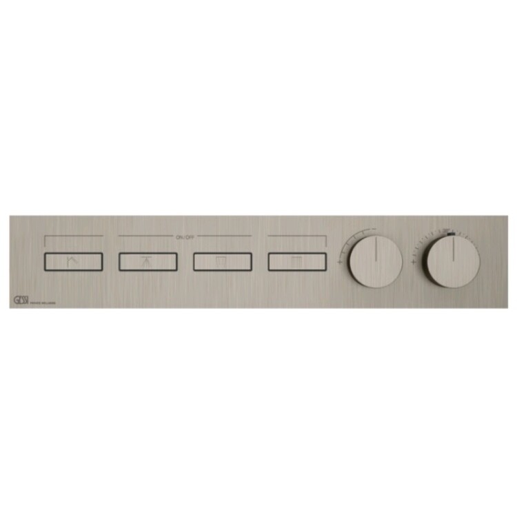 Смеситель для душа, Gessi, HI-FI, на 4 потребителя, тип открывания воды-нажимной (кнопки), тип регулирования воды-термостатический картридж, монтаж-настенный встраиваемый, отверстия для монтажа-6, внутренняя часть-необходимо заказать, цвет-Finox Brushed Nickel Смеситель для душа, Gessi, HI-FI, на 4 потребителя, цвет-Finox Brushed Nickel