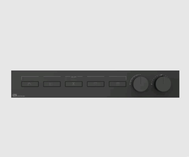 Смеситель для душа, Gessi, HI-FI, на 5 потребителей, тип открывания воды-нажимной (кнопки), тип регулирования воды-термостатический картридж, монтаж-настенный встраиваемый, внутренняя часть-необходимо заказать, цвет-черный матовый Смеситель для душа, Gessi, HI-FI, на 5 потребителей, цвет-черный матовый