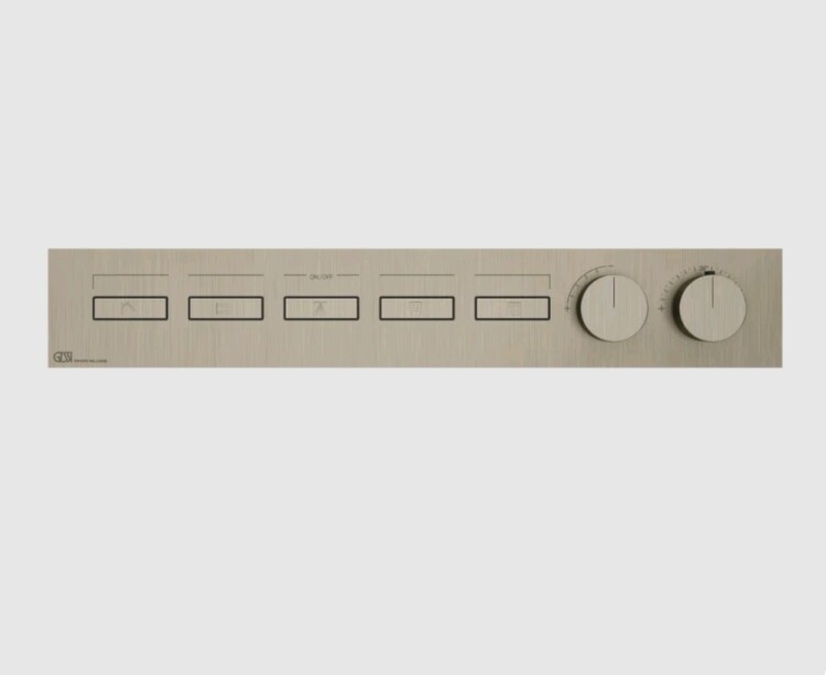 Смеситель для душа, Gessi, HI-FI, на 5 потребителей, тип открывания воды-нажимной (кнопки), тип регулирования воды-термостатический картридж, монтаж-настенный встраиваемый, внутренняя часть-необходимо заказать, цвет-Finox Brushed Nickel Смеситель для душа, Gessi, HI-FI, на 5 потребителей, цвет-Finox Brushed Nickel