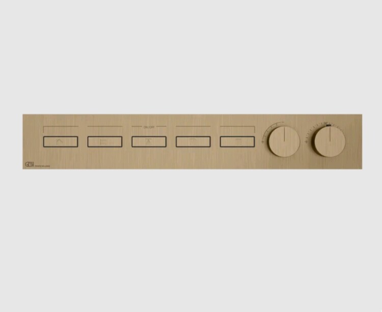 Смеситель для душа, Gessi, HI-FI, на 5 потребителей, тип открывания воды-нажимной (кнопки), тип регулирования воды-термостатический картридж, монтаж-настенный встраиваемый, внутренняя часть-необходимо заказать, цвет-Warm Bronze Brushed PVD Смеситель для душа, Gessi, HI-FI, на 5 потребителей, цвет-Warm Bronze Brushed PVD