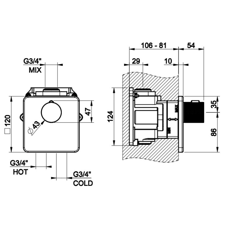 Смеситель для душа, Gessi, Inciso Bath&Shower, на 1 потребитель, тип открывания воды-вентильный, тип регулирования воды-термостатический картридж, монтаж-настенный встраиваемый, отверстия для монтажа-1, внутренняя часть-необходимо заказать, цвет-Black Metal Brushed PVD Смеситель для душа, Gessi, Inciso Bath&Shower, на 1 потребитель, цвет-Black Metal Brushed PVD
