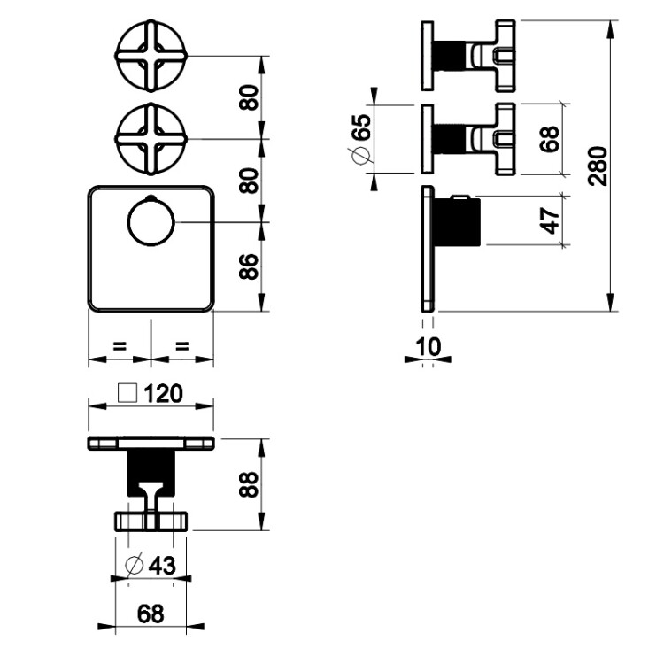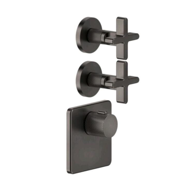 Смеситель для душа, Gessi, Inciso Bath&Shower, на 2 потребителя, тип открывания воды-вентильный, тип регулирования воды-термостатический картридж, монтаж-настенный встраиваемый, отверстия для монтажа-3, установка-вертикальная/горизонтальная, внутренняя часть-необходимо заказать, цвет-Black Metal Brushed PVD Смеситель для душа, Gessi, Inciso Bath&Shower, на 2 потребителя, цвет-Black Metal Brushed PVD