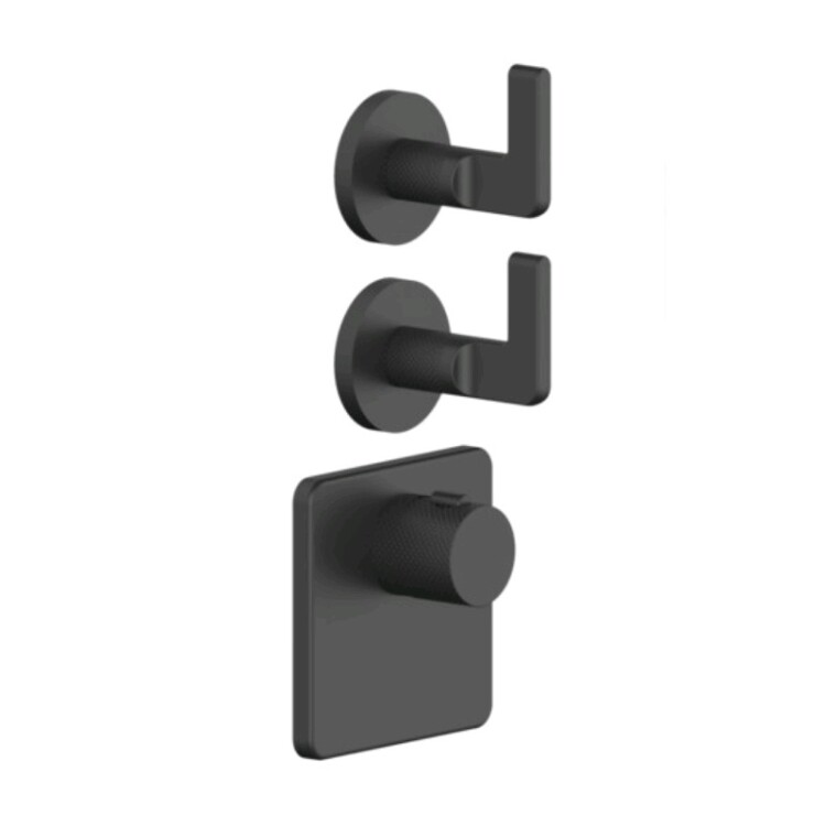 Смеситель для душа, Gessi, Inciso Bath&Shower, на 2 потребителя, тип открывания воды-вентильный, тип регулирования воды-термостатический картридж, монтаж-настенный встраиваемый, отверстия для монтажа-3, установка-вертикальная/горизонтальная, внутренняя часть-необходимо заказать, цвет-черный матовый Смеситель для душа, Gessi, Inciso Bath&Shower, на 2 потребителя, цвет-черный матовый