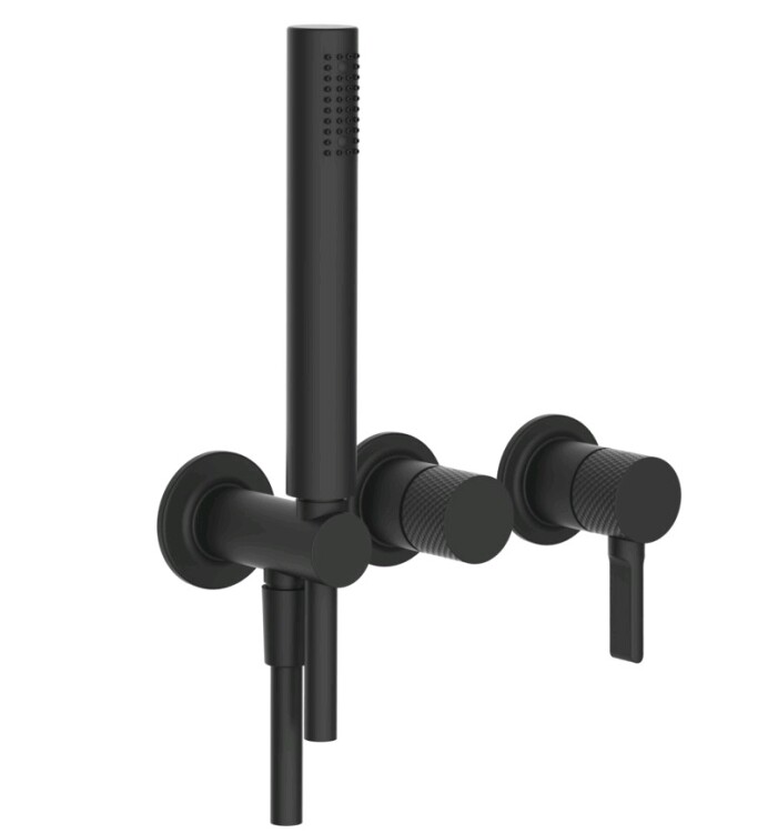 Смеситель для душа, Gessi, Inciso Bath&Shower, на 2 потребителя, тип открывания воды-однорычажный, тип регулирования воды-керамический картридж, монтаж-настенный встраиваемый, отверстия для монтажа-3, в комплекте-переключатель, ручной душ, держатель ручного душа с подводом воды, шланг, мм-1500, внутренняя часть-необходимо заказать, цвет-черный матовый Смеситель для душа, Gessi, Inciso Bath&Shower, на 2 потребителя, цвет-черный матовый